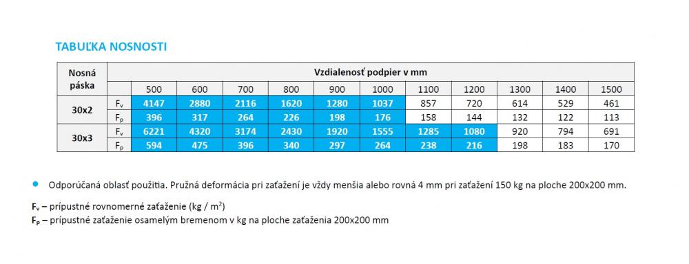 - Nosnosť pri plošnom zaťažení: 1620 kg / m2